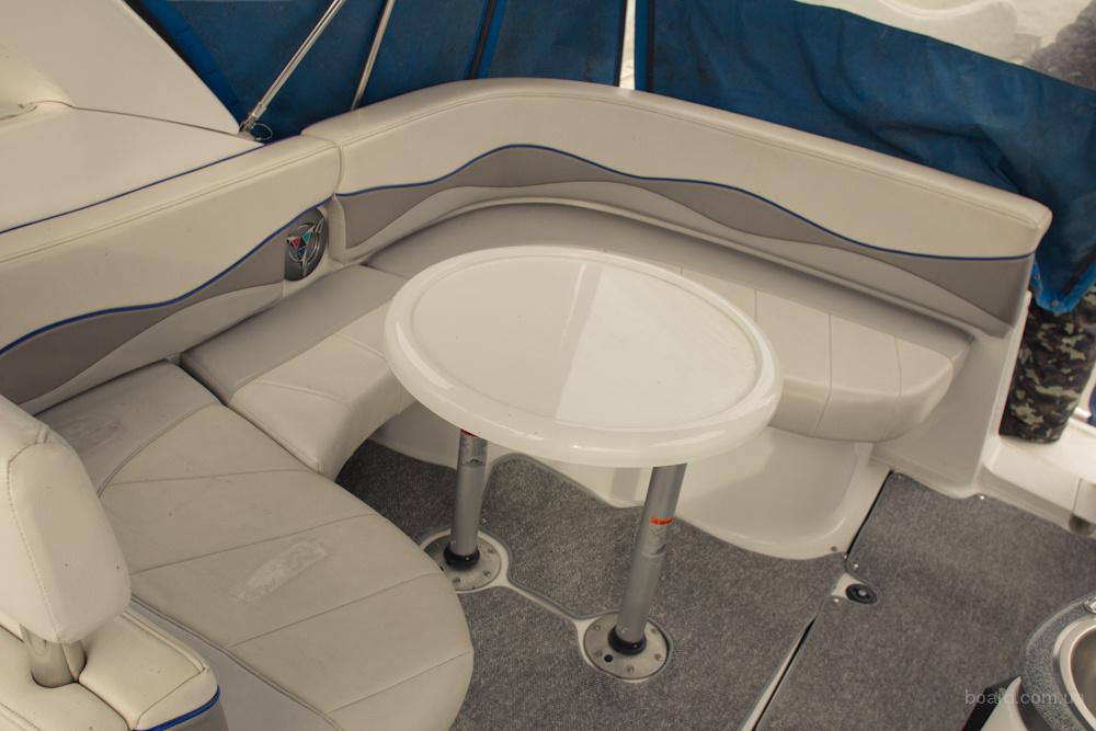 • Двойное сиденье водителя • Холодильник • Акриловый биминитоп с боковыми шторками • Матрац для загара на носу