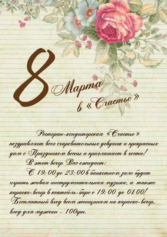 8 марта в "Счастье"  (пропоную)