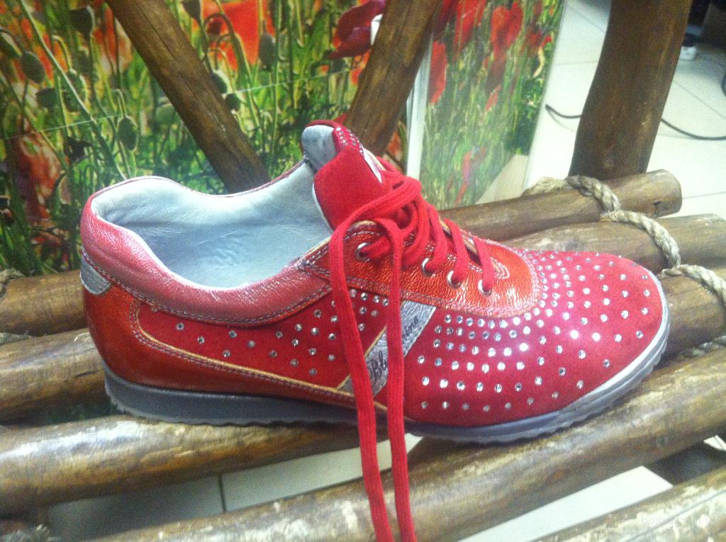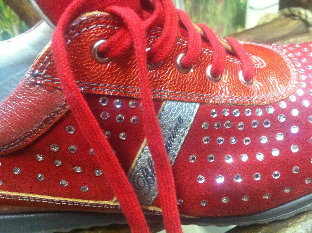 Красивейшие фирменные кроссовки Blumarine. Оригинал. Размер 37,5-38. Красного цвета с камнями сваровски. Высококачественная кожа. Очень стильные и яркие.