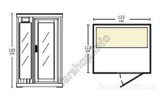 Размеры: 112 x 122 х 195 см (ГхШхВ).