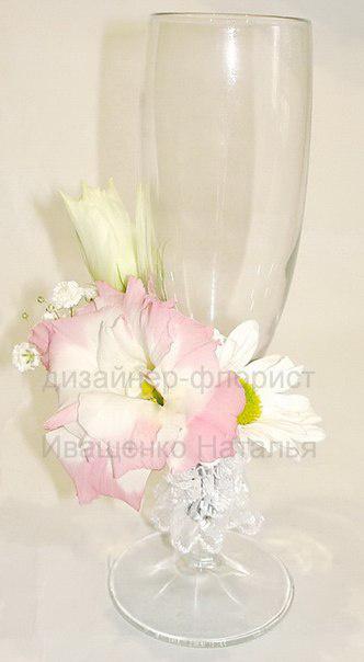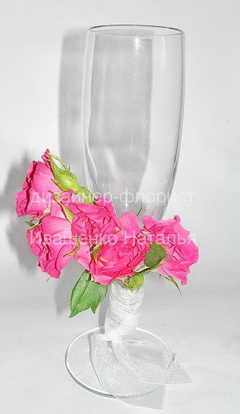 Оформление свадебных бокалов живыми цветами под заказ, украшение цветами в разных стилях, цена от 150грн пара. Яркие украшения декором и цветами в нужном стиле.