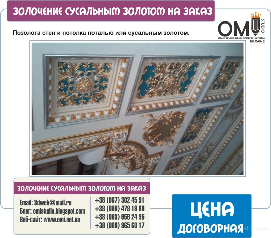 Позолота, золочение, позолота сусальным золотом и поталью, позолота стен и потолка поталью или сусальным золотом, золочение лепнины, позолота мебели, дерева, ковки, эксклюзивное покрытие стен и потолка, декоративные покрытие, изготовление лепнины, изготовление эксклюзивного лепного декора, рельеф, барельеф, интерьерный лепной декор, экстерьерный лепной декор, изготовление витража или лже-витража, художественная роспись лепнины