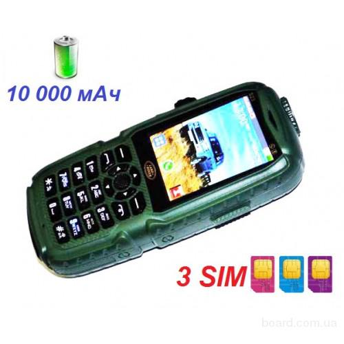 Корпус покрыт прочным материалом,который защитит телефон от всяческих повреждений,ударов,царапин.Он оснащён мощной батареей 10000 мА/ч,благодаря этому вам не нужно постоянно под заряжать его,так он может работать 7 дней без дополнительной под зарядки.Если вам нужно куда то уехать на длительное время и там не будет возможности поставить телефон на зарядку,то это именно то что вам нужно.Ещё у него есть очень отличающая особенность от других телефонов,он на 3 сим карты и в комплекте идёт в подарок мощный USB фонарик.