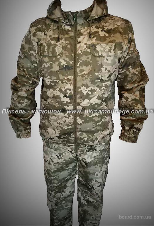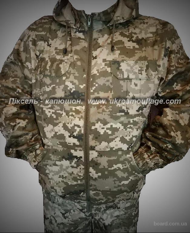Костюм камуфлрованый - пиксель. Сезон - весна, лето, осенью Больше костюмов и амуниции на www.ukrcamouflage.com.ua Куртка с на молнии, капюшон стягивается шнурком с фиксаторами отстегивается, 4 накладные карманы, манжеты на резинке, спинка имеет складки для удобства в движении. Брюки - пояс под ремень на пуговицах, 2 накладных кармана и 2 везные. Поможем подобрать размер. Доставка и оплата на Ваш выбор.