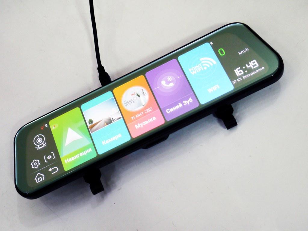 Зеркало заднего вида с видеорегистратором, WIFI, 4G, Bluetooth, GPS и камерой заднего вида, встроенный сенсорный широкоформатный дисплей 9,99 дюймов. Устройство работает на базе системы Android 8,1. В выключенном состоянии это обычное зеркало заднего вида, но стоит только включить зеркало , как перед Вами сразу же открывается современный девайс на базе системы Android. Зеркало  оборудовано видеорегистратором с качеством записи FullHD (1920x1080 пикселей), записью одновременно с 2-х камер, (возможность использования выносной камеры в режиме парковки), GPS модулем с выносной антенной, ФМ трансмиттер (для передачи аудио на штатную магнитолу). Основное преимущество - наличие встроенного 4G модема (для выхода в интернет) Возможность управлять регистратором через приложение CarAssist. Особенность зеркала - из-за огромного 10" экрана, при отключении питания от зеркала, оно автоматически отключается, т.е. использование зеркала без зарядки невозможно.