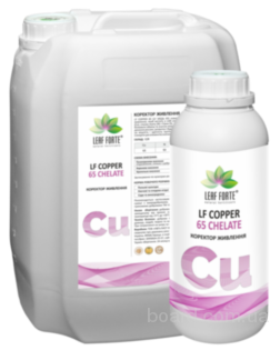 COPPER 65 (МЕДЬ 65) - содержит в себе уникальное сочетание Меди (Cu), Азота (N) и Серы (S), которые регулируют синтез углеводов и белкового обмена, которые значительно улучшают фотосинтез, интенсивность дыхания растений, развитие и строение клеточных стенок, влияющих на прочность и способность противодействовать влиянию негативных факторов. Синергия этих элементов значительно влияет на качество и количество урожая. Культуры особенно чувствительные к дефициту Меди (Cu): сахарная свекла, пшеница, ячмень, подсолнечник, овес, лен, люцерна, кукуруза, корнеплоды, виноград, овощные и другие.