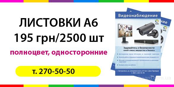 Листовки А6, односторонние, 2500 шт – 195 грн