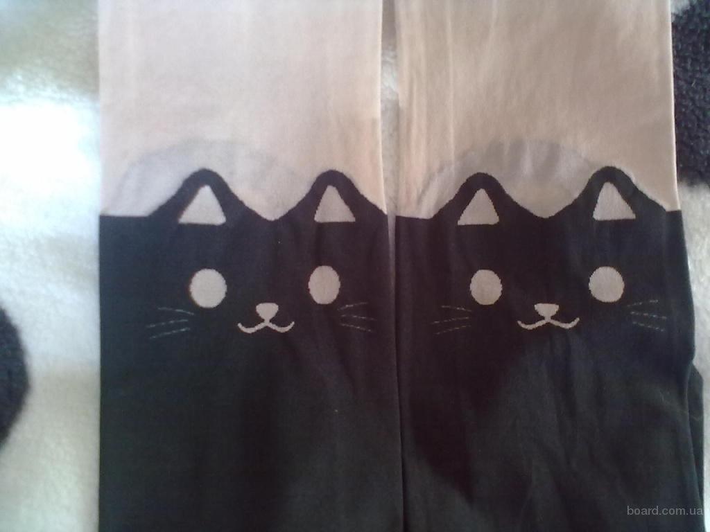 Колготки с имитацией чулков с рисунком кошка  (продам)