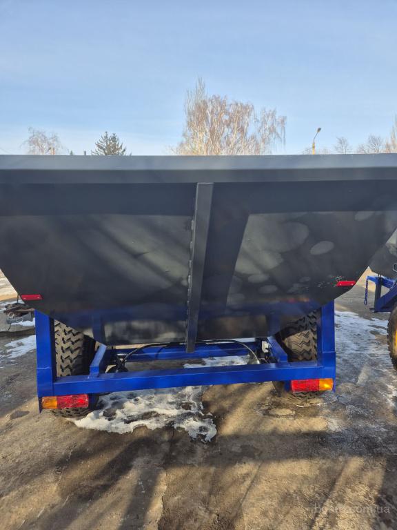 Конструктивні характеристики напівпричіпаВантажний кузов причепа НТС-5 герметичний та може бути виконаний з металу товщиною 3, 4 або 5мм. Об'єм такого кузова становить 8м3. Для зручності в днищі кузова присутня зливна пробка. Рама напівпричепа виготовлена з профільних труб товщиною 5мм розміром 120х80 та 100х100, а дишло складене в короб з двох гарячекатаних 16 швелерів. Особливу увагу треба звернути на виконання зчіпної петлі. Вона має можливість регулювання по висоті та змінну втулку, що полегшує обслуговування під час експлуатації. Задній борт кузова орієнтований на самовивантаження вантажу, що транспортується, при підйомі кузова. Таке розвантаження досягається завдяки куту перекидання кузова в 70о потужними гідроциліндрами зі штоком 50мм. Напівпричіп легко агрегатується з тракторами потужністю 80л.с -100 к.с. Оснащений покращеною ходовою системою. Завдяки шинам більшого розміру - 16,5/70-18 можна працювати і на асфальтованих дорогах, і в польових умовах. Також наявність світлової та попереджувальної сигналізації на самоскидному причепі НТС-5 дає можливість спокійно пересуватися громадськими дорогами. Виконаний із зносостійких надміцних матеріалів.