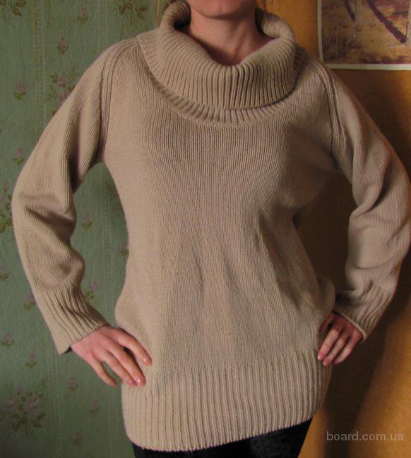 Свитер длинный бежевый с большим горлом. 50 грн.