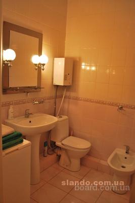 Совместный санузел, с новой импортной сантехникой (ванная с подлокотниками, биде). Также в квартире есть весь необходимый набор посуды, постельное белье, полотенца, банные принадлежности.