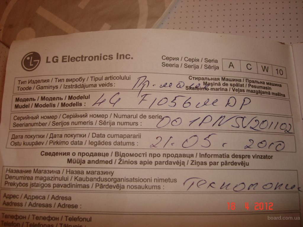 Срочно. год гарантии. уместен торг. Производитель изделия LG Модель F1056MDP.