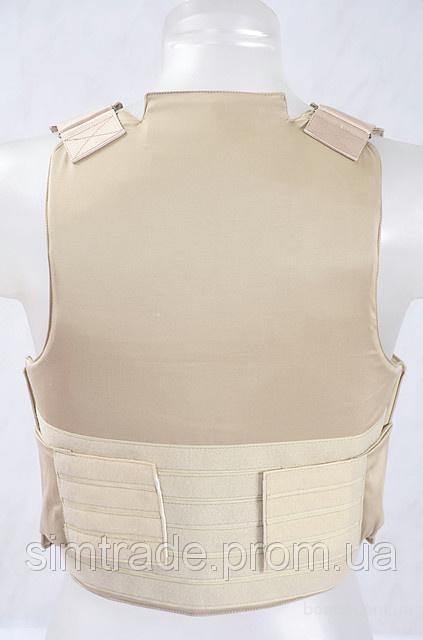 С внутренней стороны груди и спины, изделие имеет по всей ширине разъем для комплектации бронежилета гибкими баллистическими пакетами, которые находятся в водонепроницаемом конверте.