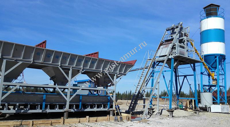 Стационарный бетонный завод – модель HZS50, бетоносмеситель JS1000, бункер инертных материалов PLD1600