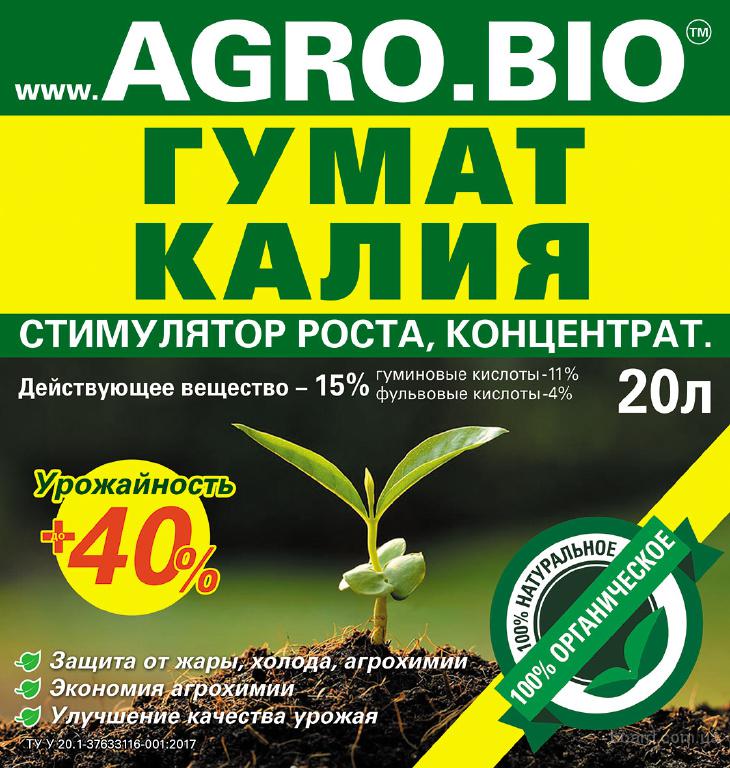 Компания - производитель AGRO.BIO предлагает не торфяной безбалластный высококонцентрированный гумат калия с высоким содержанием действующего вещества (15% против 3-4% аналогов в Украине).