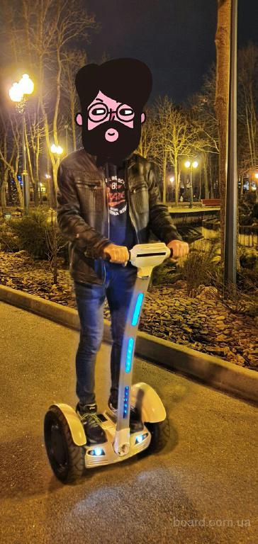 Продам сегвей гироскутер A6 Land Cruiser. В хорошем состоянии. Батареи в норме, остаточная ёмкость 7,28 А/ч. Хватит что бы кататься до 20 км. Оснащен системой антиразгона - когда скорость больше положенной, изменяет угол наклона и притормаживает из-за этого. В комплекте инструкция. На экране перестала показываться скорость. Напряжение и заряд батареи показывает. Ручки управления не отсоединяются от длинной штанги управления , они сварены предыдущим владельцем, что бы не разбалтывались контакты соединения. Включается с пульта брелка и кнопкой на самом сегвее. Есть режимы подсветки фарами и свечение голубым светом длинной ручки управления. В комплекте идёт сам сегвей, зарядное устройство, брелок управления и инструкция. Вес 27 кг. Колеса 15 дюймов, максимальная скорость 16 км/ч. Научился управлять им быстро. Но электроскейт нравиться больше, поэтому и продаю.