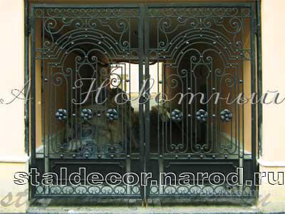 Цены и эскизы на кованые ажурные решетки на окна, садовую и парковую мебель, решетчатые двери, газонные ограждения дешево, работы декоративно-художественной ковки в Санкт-Петербурге.