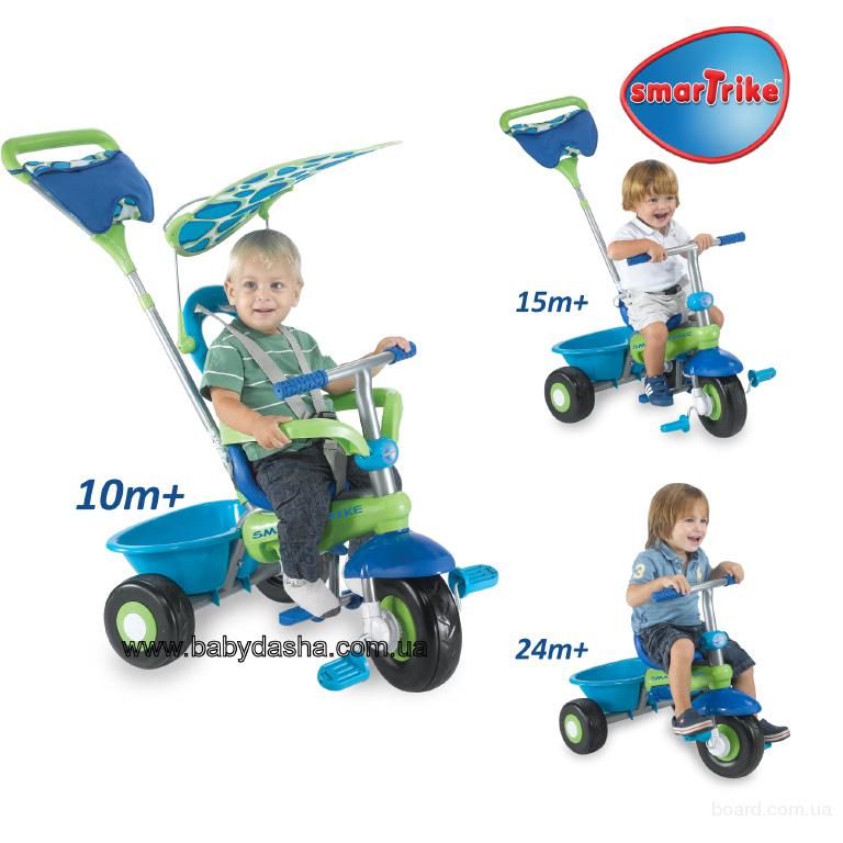 Детский трехколесный велосипед Smart Trike Fresh Фреш 3 в 1, предназначен для малышей от 10 месяцев и старше, позволяющий обучить малыша сохранять равновесие на движущемся транспорте. Smart Trike Fresh Фреш New легко превращается в удобную и безопасную трехколесную каталку и самостоятельный трехколесный велосипед. Ремни безопасности, круг- ограничитель и съемный козырек от солнца обеспечивают безопасность малыша во время поездки.
