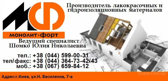 Компания МОНОЛИТФОРТ предлагает Вам обмазочную гидроизоляцию мембранного типа  (гидроизоляция фундамента, подвала, кровли, террасы, балкона,  погреба, резервуара, дамб, плотин и пр.) от Украинского предприятия  изготовителя ТМ ”Сиопласт”