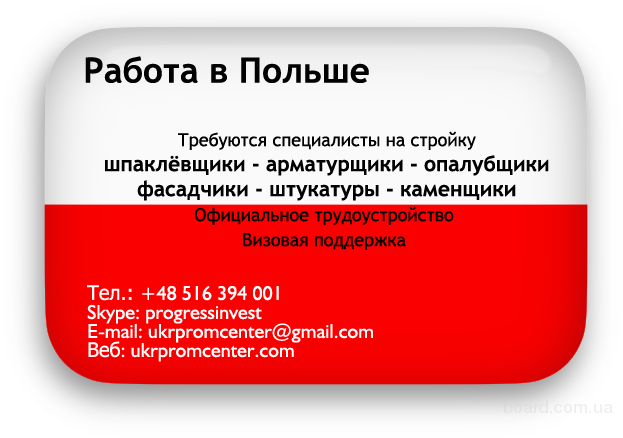 Приглашаются женщины, семейные пары (без опыта работы) на сбор грибов. З/плата от 7 до 11 злотых в час (зависит от количества собранных грибов). Проживание предоставляется, но с з/п снимается 150 злотых в месяц. Работа официальная. Звоните +48 729 440 543