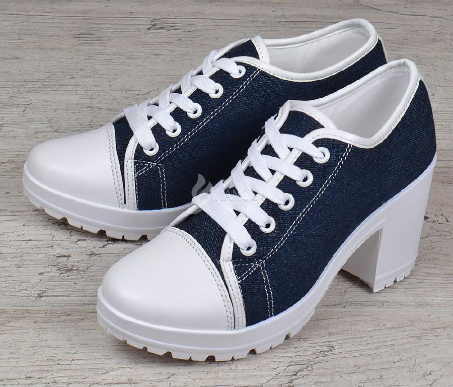Тренд сезона! Стильные женские дышащие джинсовые туфли на каблуке Miu Miu style синие с белым. Производство - TM Camo, Польша. Материал - текстиль, джинс, иск.кожа. Туфли на комфортной и легкой подошве с устойчивым протектором, на широком каблуке высотой 5,5 см. Верх туфель - дышащая джинсовая ткань, носок и задник поверх ткани укреплены вставками из белой эко-кожи, которые поддерживают стопу при ходьбе. За счет комфортной колодки, а так же легкой подошвы с устойчивым каблуком модель туфель Miu Miu style можно носить с утра до вечера при этом чувствуя себя, будто в кроссовках.