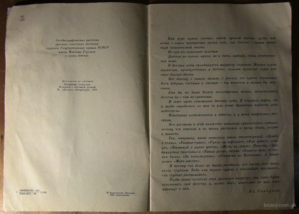 Ножичек с костяной ручкой. В.Солоухин. *Веселка* 1986 г. Детская книжка. (Могу выслать почтой)  (продам)