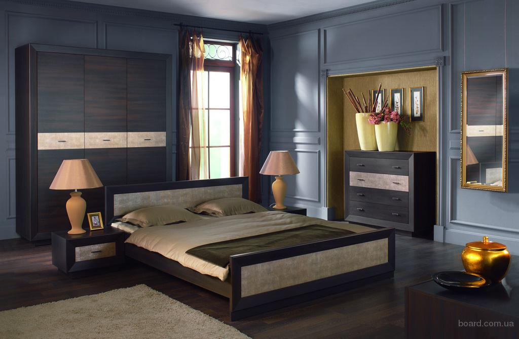 Спальня Ларго сибу 7650,00 грн (кровать + 2шт прикроватки+камод+3 дв. Шкаф) Спальня представлена в цвете венге с вставками из кожзама под кожу крокодила.