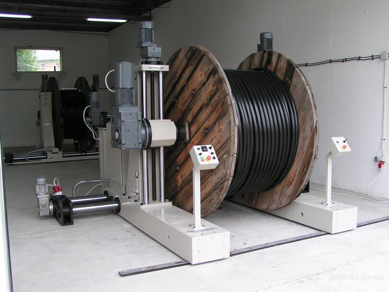 Производим устройства для перемотки кабеля диаметром до ф80. Номер барабана 30 (диаметр щеки до 3000мм). Максимальный вес 6.5 тонны.