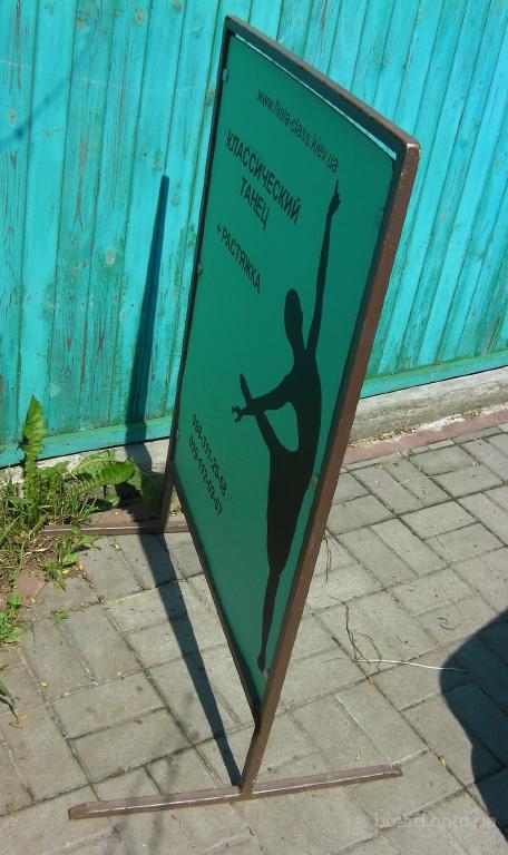 Продам устойчивый качественно изготовленный из металлического профиля двусторонний штендер. Размеры рекламного поля: высота-90 см, ширина-70см, Рекламное поле из пластика. Цена 300грв. Киев. Руслан.