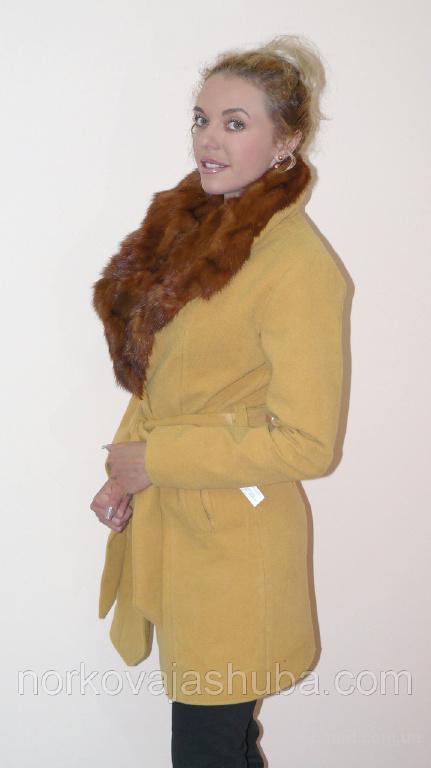 норковый воротник кашемировое пальто горчичного цвета  (продам)
