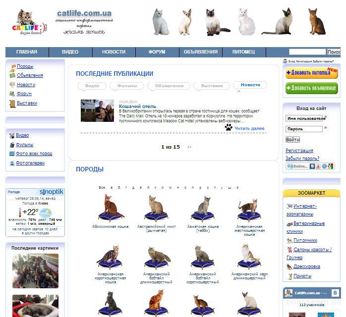 Продается интернет-портал catlife(точка)com(точка)ua - Мир Кошек.