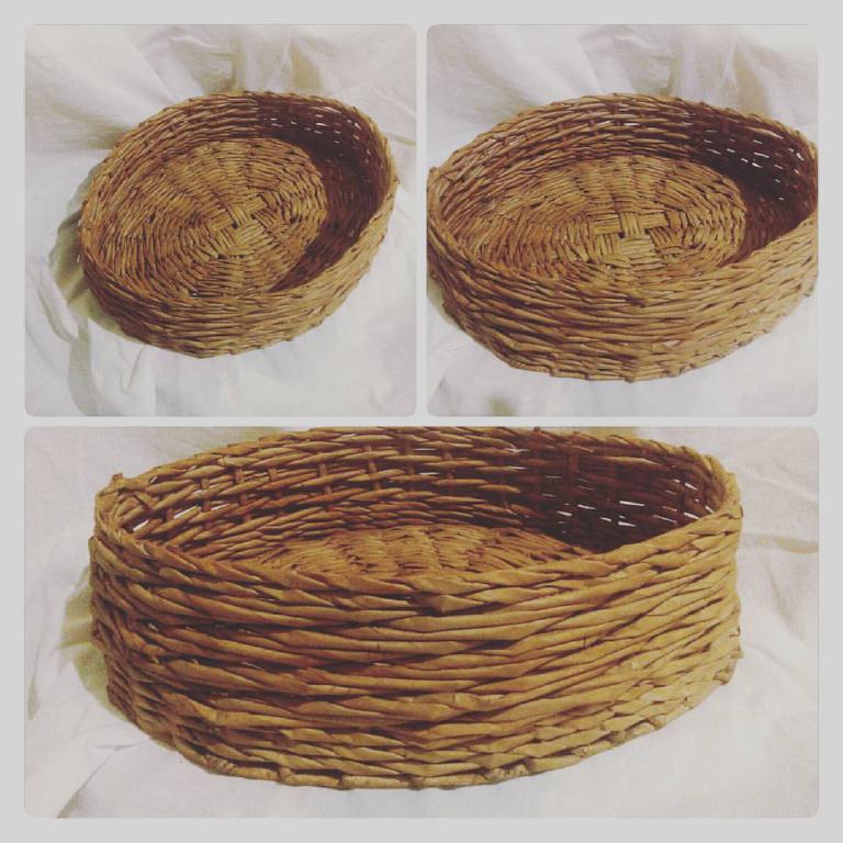 Интерьерная корзина, кухонный поднос, в хозяйстве используется как хлебница. Очень вместительная. Изделие выполнено в технике плетения из бумажной лозы, грунтовано и окрашено экологически чистыми материалами на водной основе: водная морилка для дерева, клей ПВА и акриловый лак. Хлебница достаточно прочная, не боится влаги. Размер овального дна 32*25, высота 12, стоимость корзинки 200 грн, изготавливается под заказ. Возможно выполнение в вашем цвете и размере, с крышкой без нее, другой геометрической формы(круглая, квадратная) с элементами декора и без них.