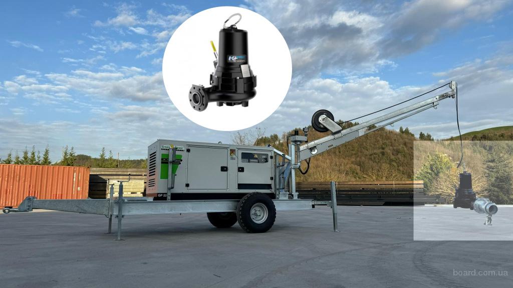 В комплекті виносний маніпулятор для тимчасового встановлення насосу в люк та трубопроводи для викачки стоків.