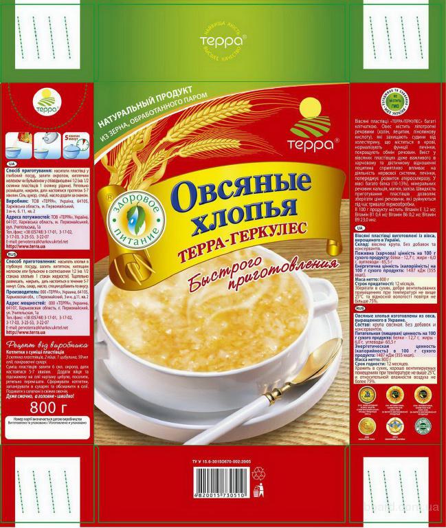 ООО "ТЕРРА" производит и реализует весовые и фасованные крупы и хлопья быстрого приготовления. Качество высокое. Экспортер года в Украине. ISO-9001:2000.