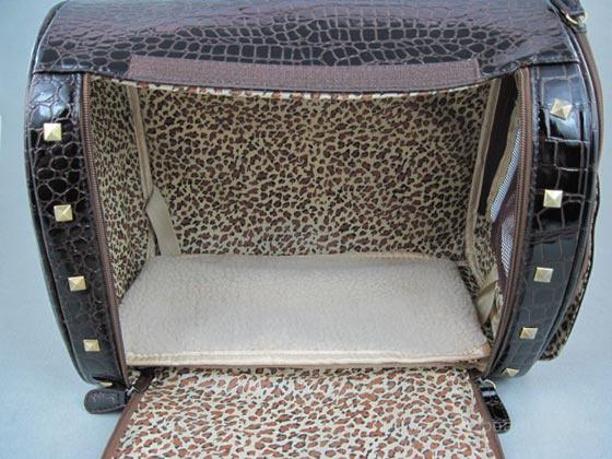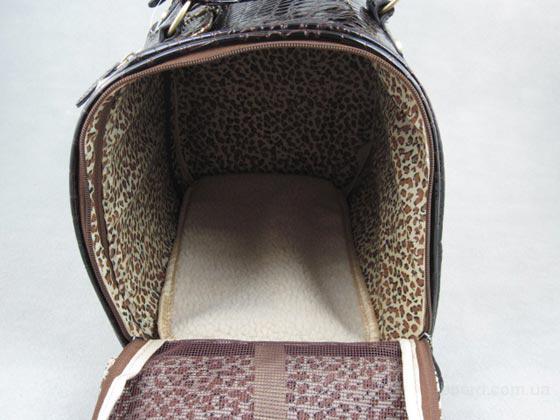 Стильная лаковая сумка-переноска для маленьких собачек, как для повседневного пользования, так и для праздничного выхода. Коричневого цвета. Изготовлена из качественного кожзаменителя под кожу крокодила с желтой металлической отделкой. Имеет две двери и окно, съемный флисовый коврик, который хорошо стирается. На лицевой части сумки маленький карман и карман на боковой части. Очень практичная и удобная для вас и вашего любимца. Размеры.36х23х28 см.