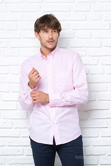 Рубашка мужская с длинным рукавом. Модель прямого покроя. отложной воротник, концы пристегивается на пуговичках, центральная застежка на пуговицах в цвет изделия