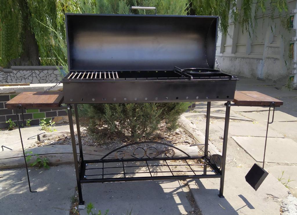 Размеры жаровни 100х35х14см. Высота 80см. В изготовлении используем гибку метала. Конструкция полностью разборная, что удобно в транспортивке. Этим же удешевляет доставку Новой почтой.