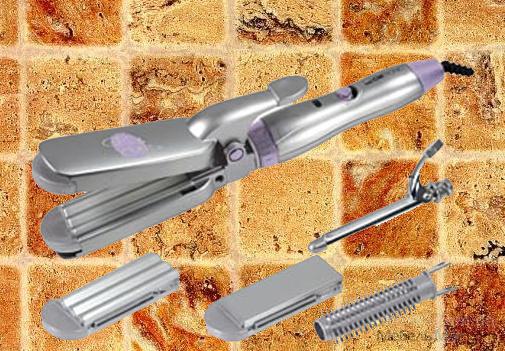 2 в 1 разглажеватель волоса: -идеален для модных причесок; -сменные вставки для завивания и разглаживания волос; -антистатический эффект; 2 в 1 стержневой фен/щипцы для завивки: -стержневой фен и щипцы для завивки в одном; -щипцы для завивки с хромовым покрытием; -съемная насадка-расческа; Выключатель; Разъем для насадок; Защита от перегрева; Эргономическая ручка; Габариты: 315х76х41 мм. 230V, 50Hz, 20W.
