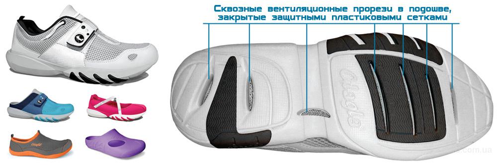 Glagla – легчайшая обувь с вентиляцией в подошве из Франции. В подошве Glagla расположены специальные вентиляционные прорези, а верх сделан из «дышащей» сетки, за счет чего во время ходьбы внутри обуви образуются сквозные воздушные потоки. Благодаря этому значительно снижается температуры стопы, а нога практически не потеет.