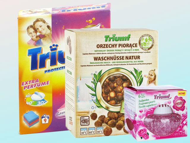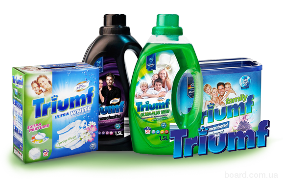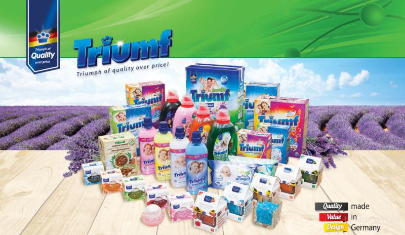 Пропонуємо Вашій увазі новий бренд TRIUMF! Вперше на Україні! Усі сертефікати відповідності, легальна поставка на Україну! Ми являємося офіційними дистрибюторами та раді допомогти Вам у гуртових закупках. Серія включає в себе порошки, кондиціонери, гелі для прання, освіжувачі повітря. TRIUMF - це німецька якість та доступна ціна.