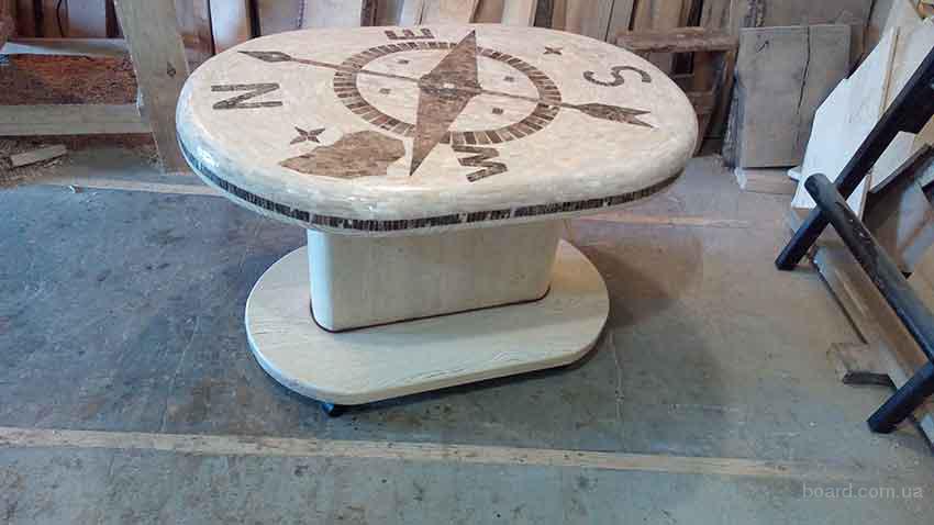 Стол журнальный  из мраморной мозаики, низ дубовый.