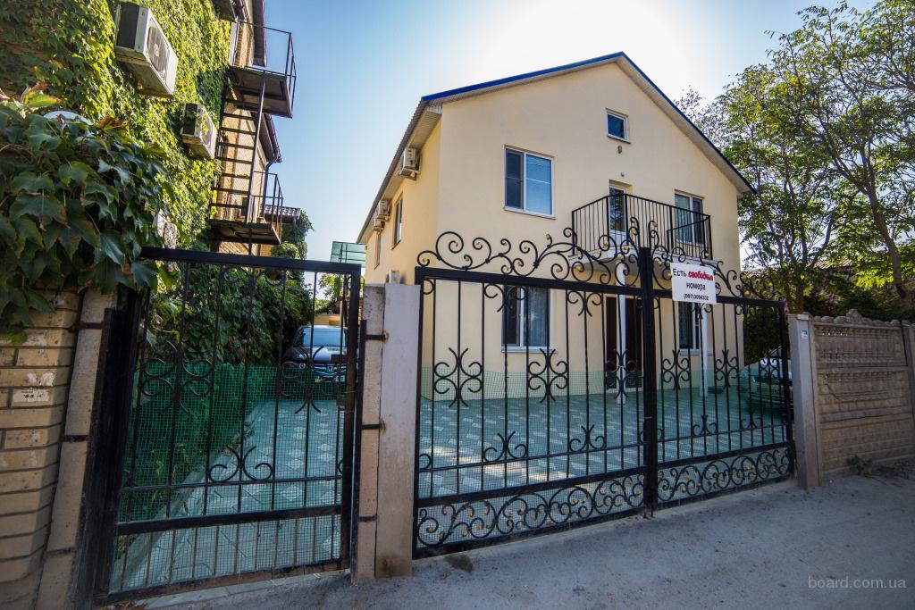 Дом с ремонтом, мебелью и техникой. В течении 10 лет принимал гостей. Имеются бронировки на июль 2018 г. 2 этажа, 11 номеров, 4 из которых с удобствами. Площадь дома 180 кв.м. Канализация и водопровод запитаны централизовано. Заведено 20 кВт электроэнергии. Шикарная терраса на втором этаже 34 кв. м. с видом на море и лиман. Двор - плитка. Дом - штукатурка.