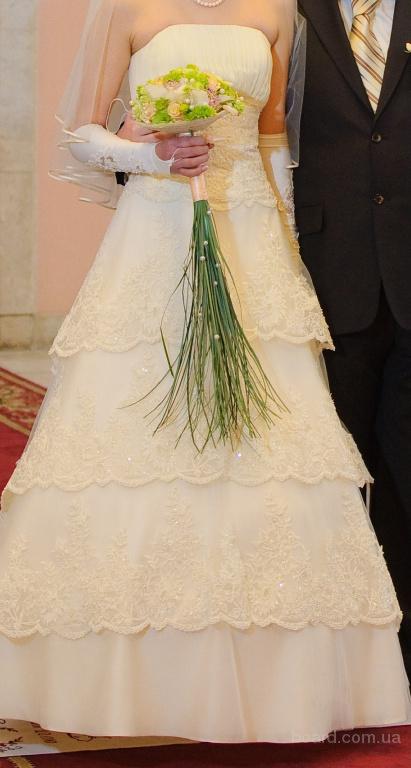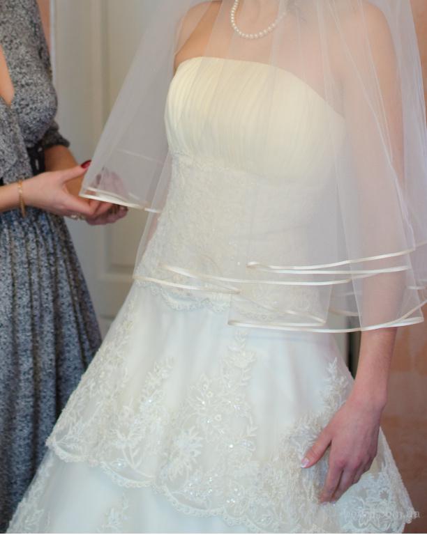 фигуру, с небольшим шлейфом, который можно подстегивать. Платье легкое и удобное.