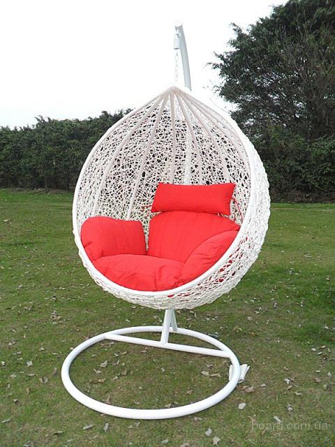 Качели, выполненые в плетении "паутинка" - на металлическом каркасе, что обеспечивает большую устойчивость и надежность и выдерживают нагрузку до 110 кг .