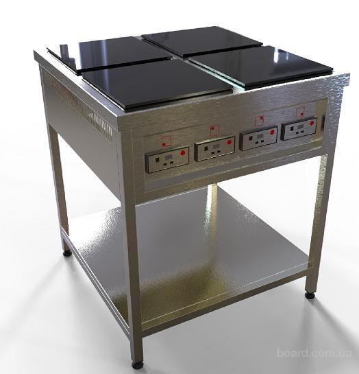 Профессиональная, 4х конфорочная индукционная плита для заведений общественного питания. Каркас изготовлен из нержавеющей стали.Индукционная плита имеет 6 уровней мощности и таймер на 240 минут. Размер (ДхШхВ)-800*700*850мм. Потребляемая мощность 8кВт. Изготавливается ...