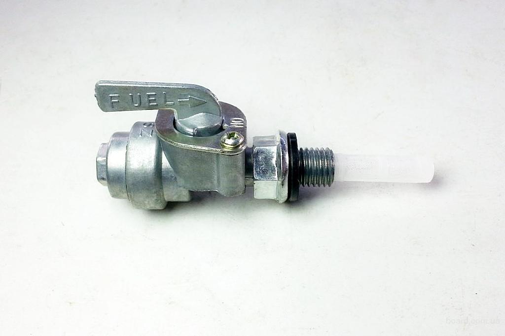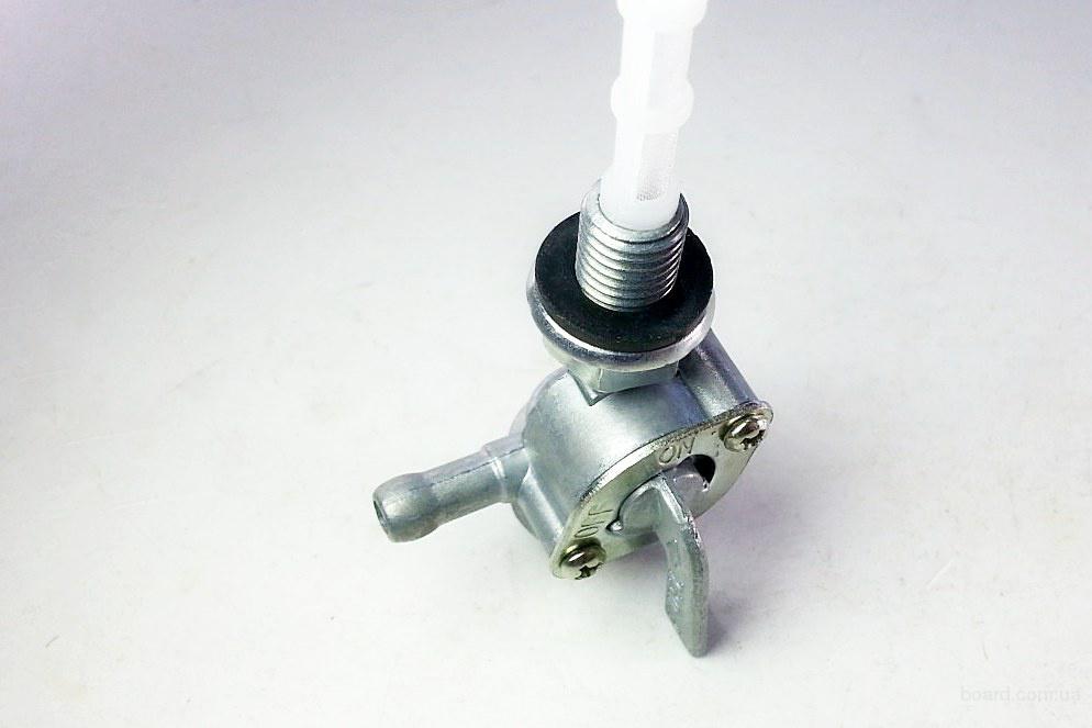 Данный бензокран является запорным устройством, устанавливается на бензобак и служит для регулировки подачи бензина на карбюратор генератора. Для уплотнения соединения в кранике предусмотрена специальная прокладка. В нижней части бензокрана находится отстойник для фильтрации топлива, в случае необходимости его нужно открутить и прочистить от мусора. Обратите внимание, после установки бензокрана выходной штуцер будет повёрнут в левую сторону.