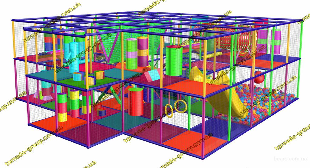 Детский игровой комплекс лабиринт для помещения (лабиринт детский игровой) занимает площадь 43.2 м2 (7,20  * 6) и имеет высоту 2.70 (высота может меняться). В лабиринте использованы разнообразные детские игровые препятствия, мосты, переходы, горки, сухой бассейн. Наполнение, вход и цвета исполнения могут быть изменены по желанию заказчика.
