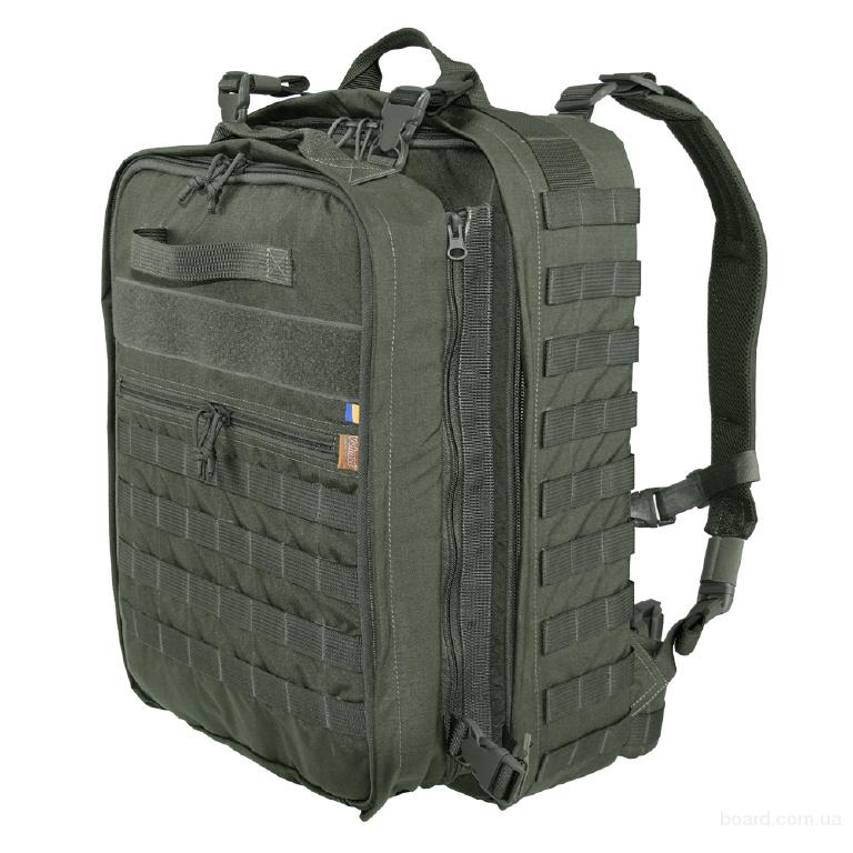 Медичний тактичний рюкзак від українського бренду “VELMET” призначений для зберігання та транспортування медичного приладдя та медикаментів. Конструкцією передбачена можливість від’єднання зовнішньої великої кишені та використання її як окремого рюкзака. Дана зовнішня велика кишеня приєднується до рюкзака однією цільною міцною застібкою-«блискавкою», що забезпечує її від’єднання одним швидким рухом. Це конструктивне рішення дозволяє використовувати простір між кишенею та рюкзаком для розміщення додаткових речей. Всередині основного відділення рюкзака наявні три окремі сумки, що фіксуються на тильній панелі широкими текстильними застібками, та три об’ємні статичні чарунки в загальній кишені на внутрішній стороні фронтальної панелі. Всередині зовнішньої великої кишені, яка може використовуватись як окремий рюкзак, розміщені три малі окремі сумки та чотири ряди подвійних еластичних чарунок. Рюкзак обладнаний чарунками системи тупу PALS/MOLLE для фіксації додаткового спорядження та приладдя. Даний медичний рюкзак є оптимальним поєднанням широкого функціоналу за призначенням, високої якості та доступної ціни.