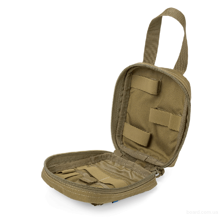 • 3 еластичні чарунки середнього розміру (довжина стрічки — 8 см) для розміщення бандажу, кровоспинного тампона, тощо.