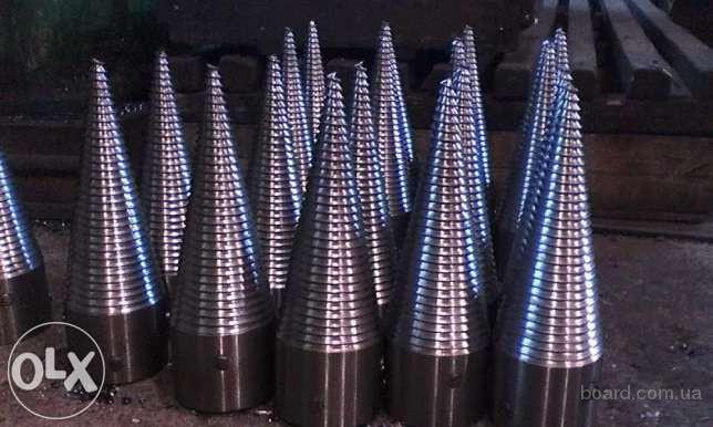 В настоящее время для заготовки дров и колки поленьев, как на крупных промышленных предприятиях, лесозаготовках, так и на небольшом подворье, в частном секторе, удобно использовать винтовой колун. Теперь заготовка дров не отнимет у Вас много сил и времени! Винтовой колун значительно облегчит Ваш труд, при этом Вам прийдется лишь подносить поленья к винту-конусу и складывать расколотые дрова. Возможно изготовление винтовых колунов под заказ. Дровокол конусный (винтовой) или конус-колун для дровокола длина - 250мм, диаметр - 60/70/80/90мм, материал - сталь 45, резьба упорная левая, шаг резьбы - 6мм, глубина резьбы - 3мм, внутренний диаметр для посадки на вал: по вашему заказу.